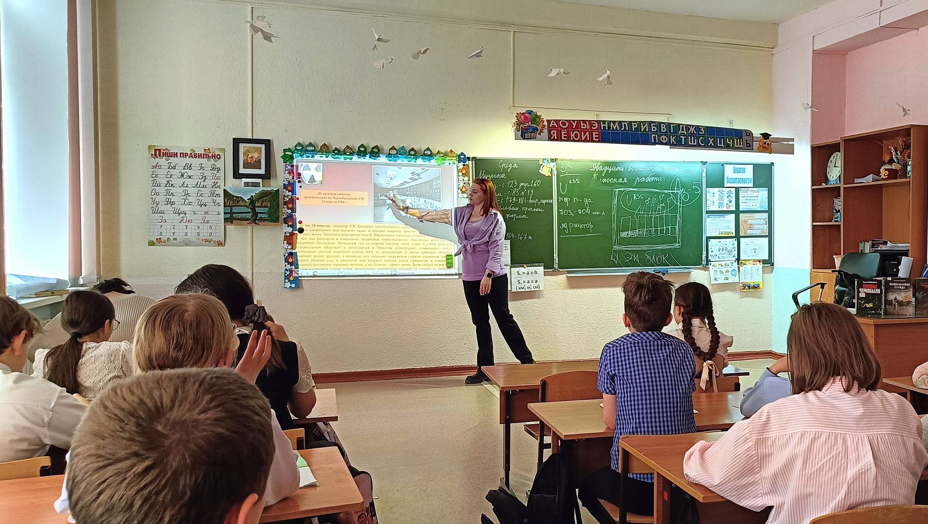 В ходе мероприятия библиотекарь детально рассказала об ужасающих событиях той роковой ночи, когда в 01:23:45 на 4-м энергоблоке прогремел взрыв. Чтобы учащиеся смогли лучше понять масштаб катастрофы, специалист наглядно объяснила принцип работы реактора и ключевые причины, приведшие к аварии, используя схематичные иллюстрации.
