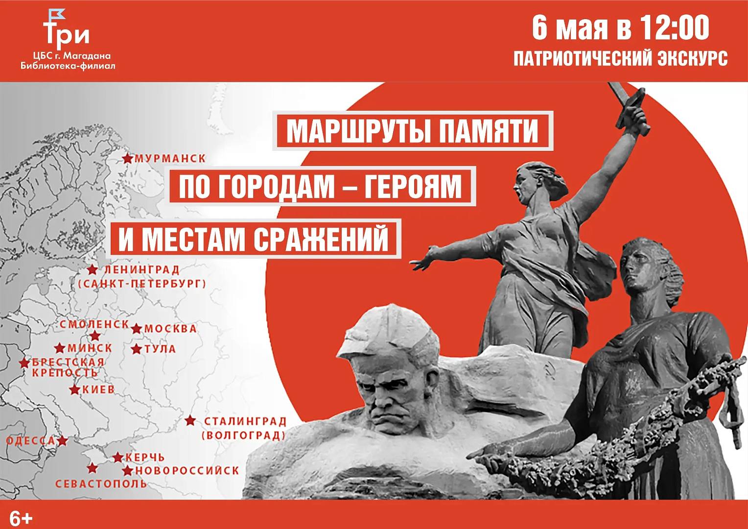 Приглашаем на патриотический экскурс «Маршруты памяти по городам-героям и местам сражений», в библиотеку-филиал № 3, где мы погрузимся в историю и почтим память героев. В рамках экскурсии вас ждут увлекательные рассказы о городах-героях и местах сражений.