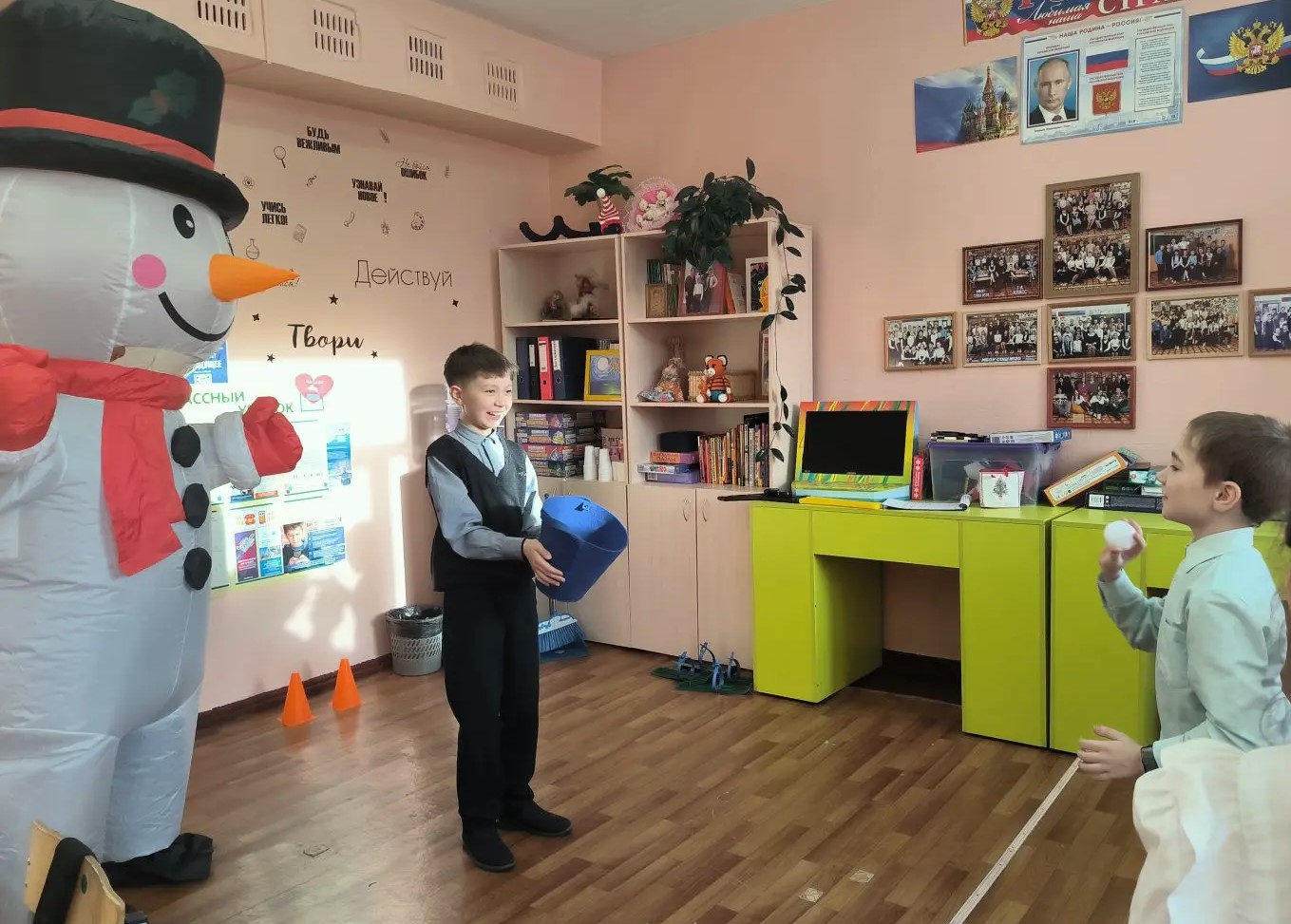 В игровой части мероприятия ребята приняли участие в забавных играх: «Поймай снежок», «Портрет Снеговика» и других, разгадали зимние загадки и сделали гирлянду «Снеговички».
