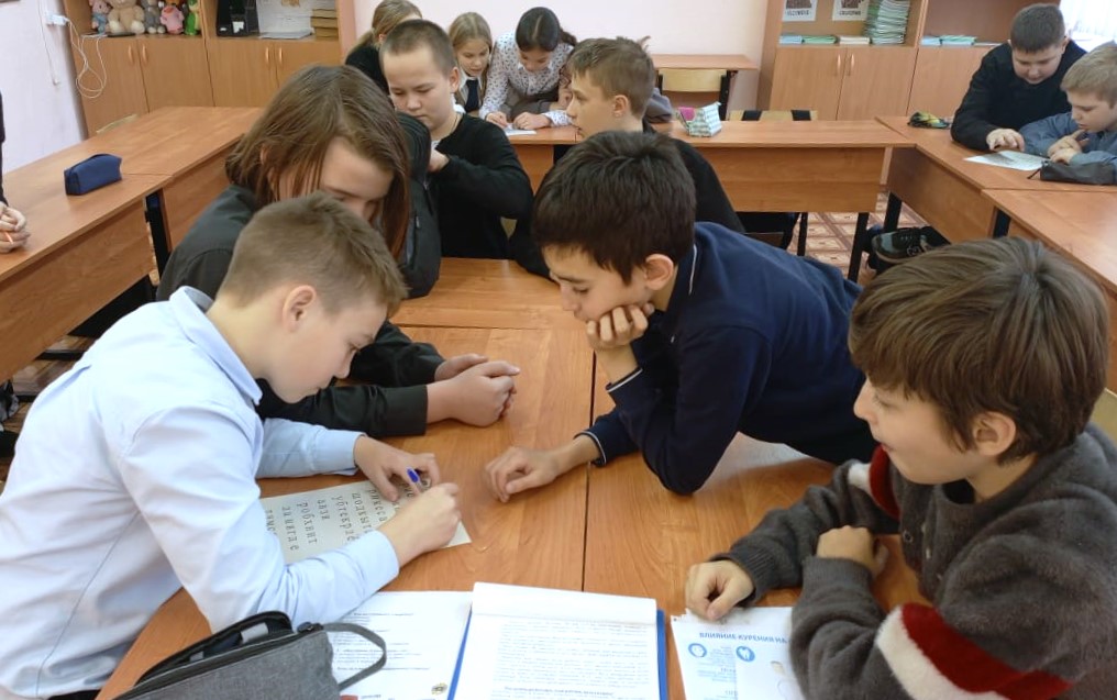 Беседа-диалог включила в себя не только рассуждение о том, как дети относятся к курению, но и то, какие есть способы отказа от этой пагубной привычки. Встреча со школьниками прошла в доверительной атмосфере. Присутствующие, отгадав анаграммы, узнали о заболеваниях, которыми страдает курильщик, перечислили причины, по которым подросток начинает курить, ответили на вопросы анкеты.