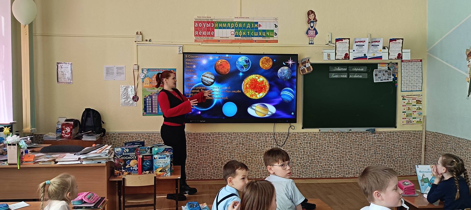 Звёздный поиск - ребята работали с энциклопедиями как настоящие учёные. По описанию им нужно было найти изображения планет в книгах.