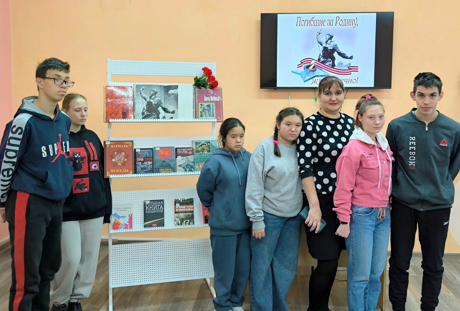 В первой части мероприятия библиотекарь познакомила ребят с историей фотографии. Автор снимка — фронтовой фотокорреспондент Макс Альперт назвал тогда это фото «Комбат», в советское время фотография чаще называлась «Коммунисты, вперед!». Фото было сделано 12 июля 1942 года около села Хорошее, между реками Лугань и Лозовая, на участке, где держал оборону 220-й стрелковый полк 4-й стрелковой дивизии. Бой был страшный, из трехсот с лишним человек в живых тогда осталось только 72, но наши воины выстояли, не дав немцам прорвать оборону, и решающую роль в этом сыграл личный пример офицера, поднявшегося в полный рост под огнем противника в контратаку и поднявшего за собой бойцов. Снимок командира, с пистолетом “ТТ” в руке поднимающего солдат в атаку, стал известен всему миру, но долгое время были известны лишь история его создания и название, данное ему фотографом, личность же изображенного на нем человека оставалась неизвестной.