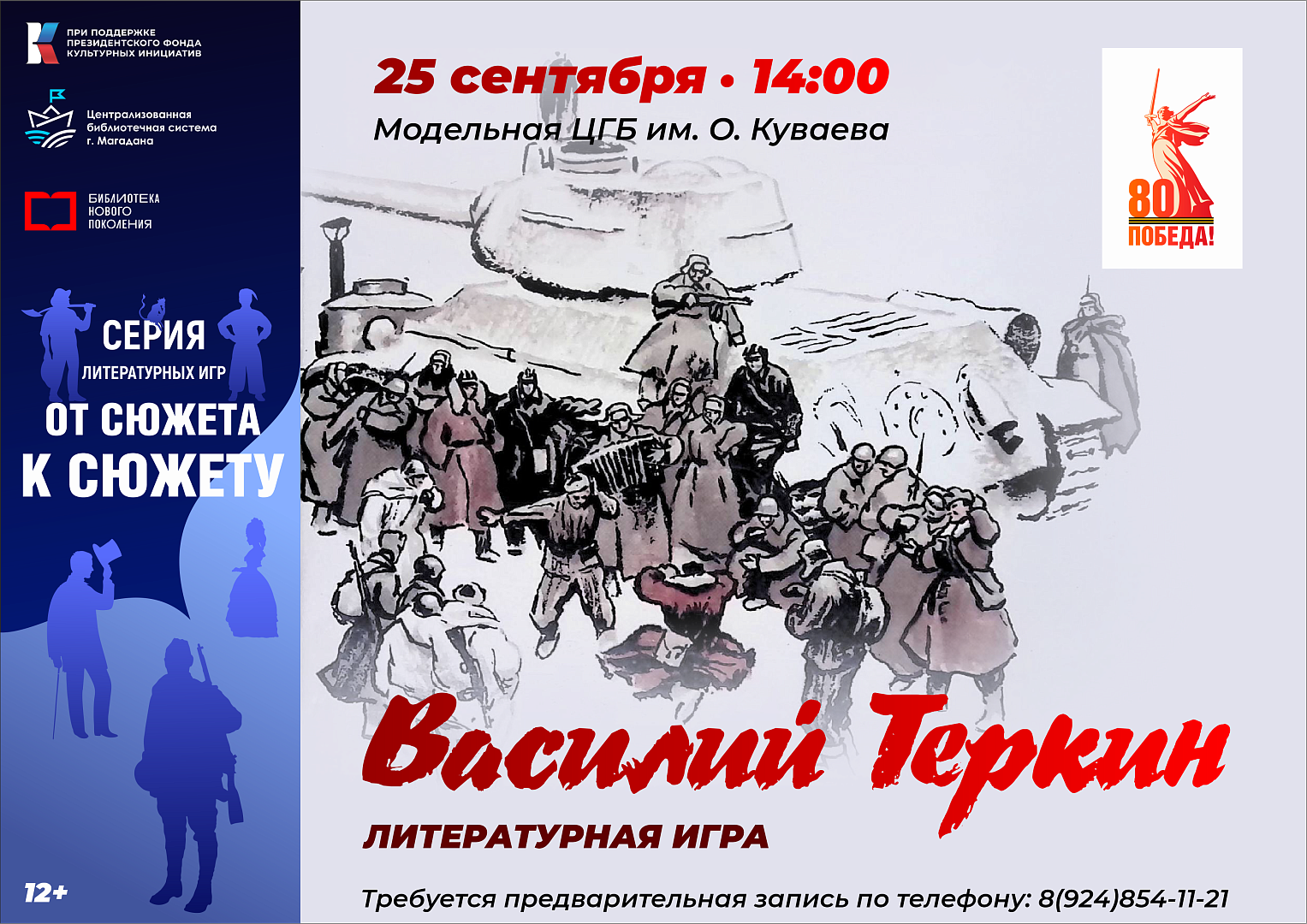 25 сентября в 14:00 модельная Центральная городская библиотека им. О. Куваева приглашает подростков и молодежь Магадана на литературную ролевую игру по мотивам поэмы Александра Твардовского «Василий Тёркин».