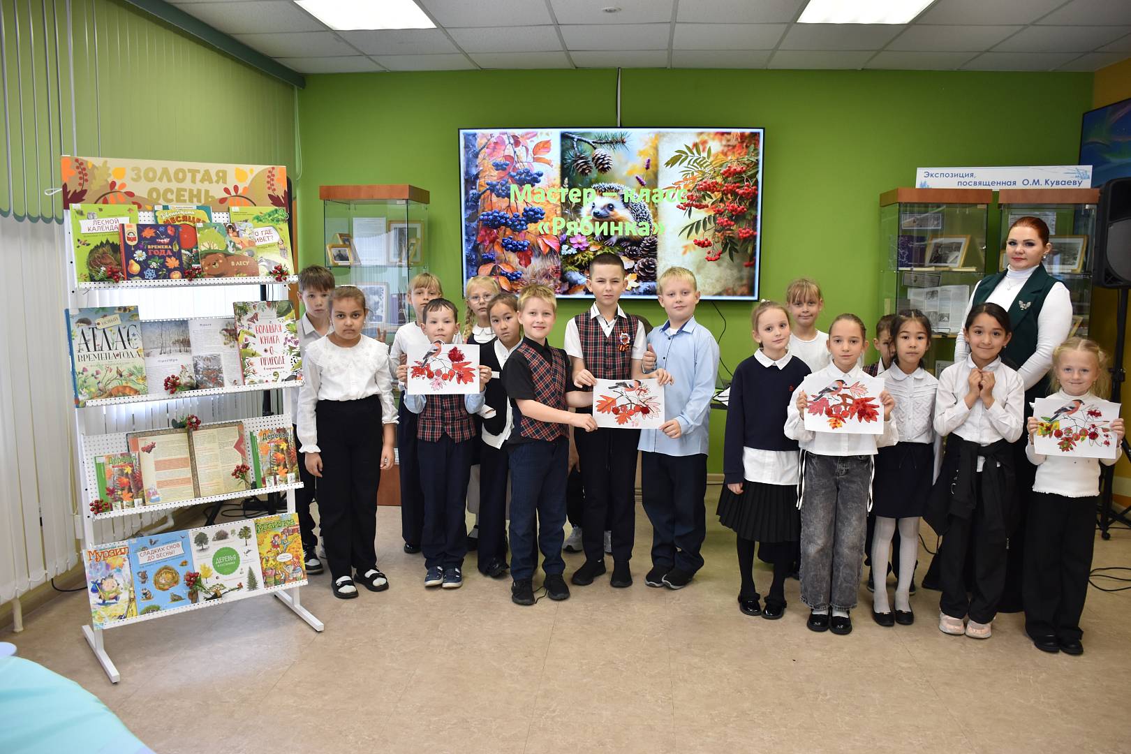 В модельной Центральной городской библиотеке им. О. Куваева состоялся мастер–класс по изготовлению композиции «Рябинка» для учеников 2 класса МОУ СОШ № 21.