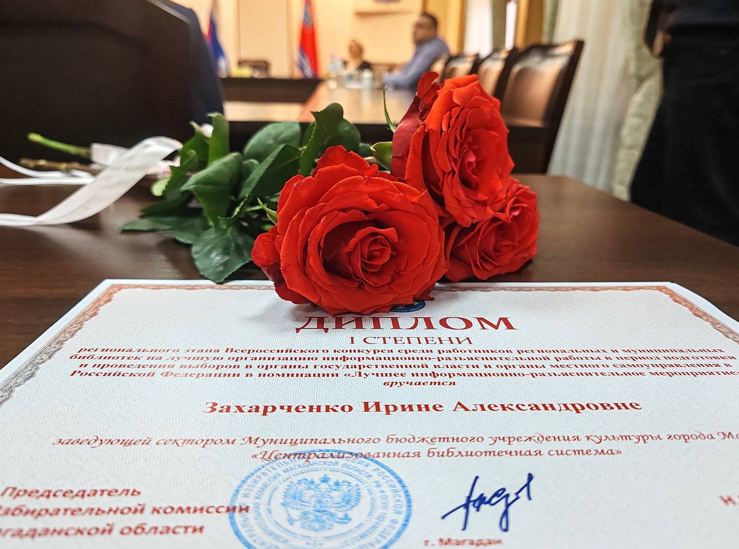 Однако, не только участие в проекте «Гений Места» стало поводом для гордости библиотечного сообщества Магадана. Захарченко Ирина Александровна, заведующий сектором массовой работы МБУК г. Магадана ЦБС, одержала убедительную победу в региональном этапе Всероссийского конкурса среди работников региональных и муниципальных библиотек за выдающуюся организацию информационно-разъяснительной работы в период подготовки и проведения выборов в органы государственной власти и органы местного самоуправления в Российской Федерации.