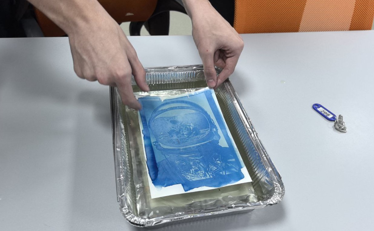 Участники познакомились с древней техникой бессеребряной фотопечати - цианотипией, с помощью которой создавали синие отпечатки растений. Медленный процесс, требующий внимания и наблюдательности, стал противоположностью стремительной цифровой эпохи - и подарил участникам ощущение творчества вне времени.