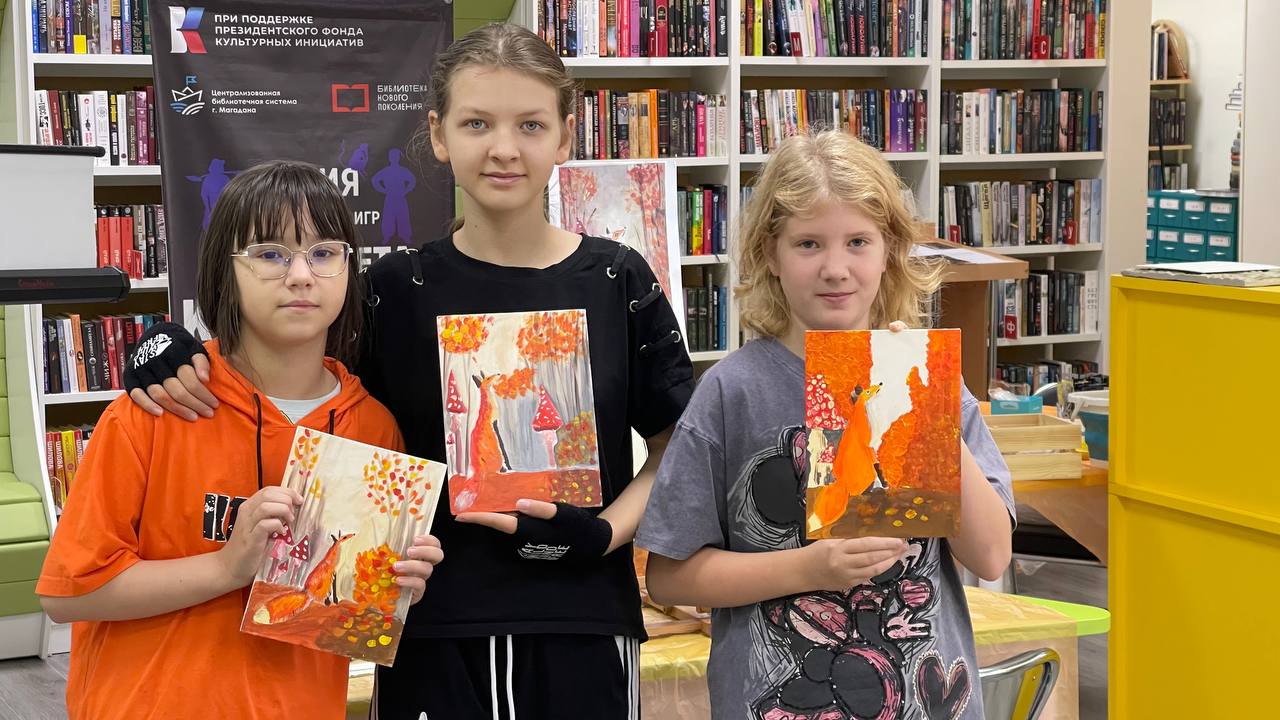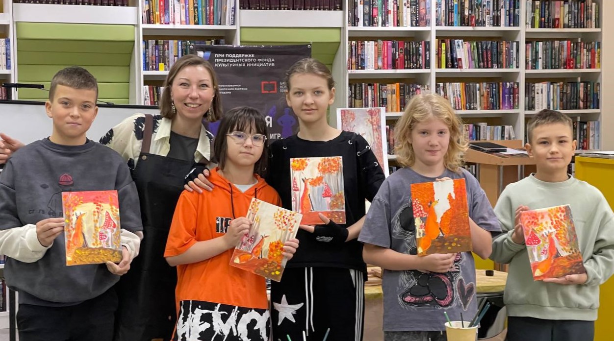 Юные читатели приняли участие в занятиях по живописи, создавая неповторимые образы осени. Теплые оттенки, мягкий свет и золотые листья оживали на холстах, помогая ребятам выразить своё настроение и удовлетворить художественно-эстетические потребности.