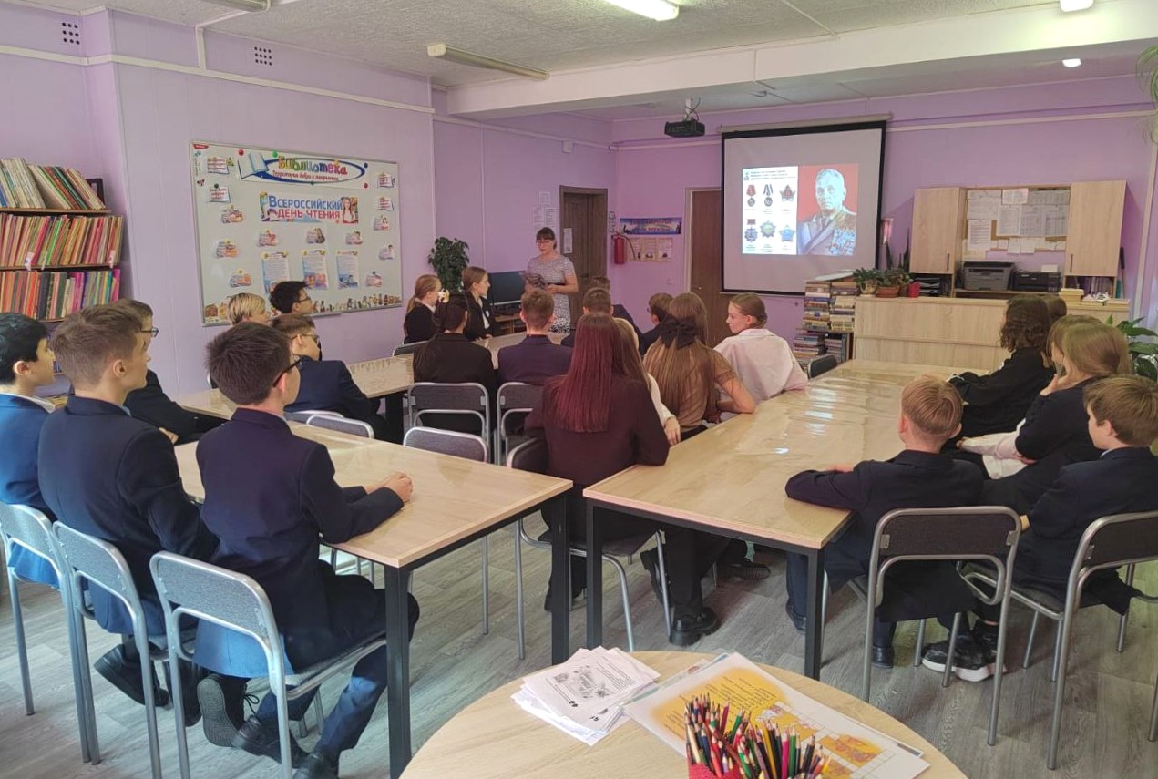 Сотрудник Детско-юношеского центра чтения провёл для учащихся МАОУ «Лицей № 1 им. Н.К. Крупской» исторический портрет «От солдата до маршала: история А. А. Гречко».