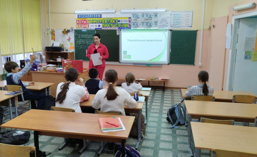 В игровой форме школьники узнали о редких видах животных, включённых в Красную книгу, и обсудили причины, по которым некоторые виды оказываются под угрозой исчезновения.