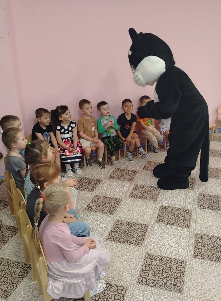 Сотрудники библиотеки–филиала № 5 организовали для дошкольников МАОУ «Детский сад № 64» игровую программу с участием кота Ученого.