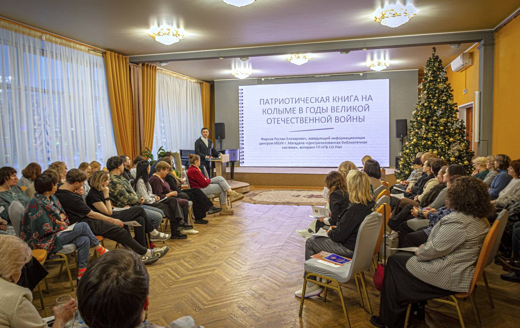 Выступление было посвящено малоизученной странице региональной истории – «Патриотической книге на Колыме в годы Великой Отечественной войны». Исследователь осветил, как в условиях крайней изоляции, когда поставки литературы из центра страны практически прекратились, на территории региона была организована собственная масштабная издательская деятельность.